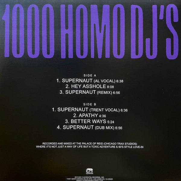 Tracklist: A1. Supernaut (Al Vocal), A2. Hey Asshole, A3. Supernaut (Remix), B1. Supernaut (Trent Vocal), B2. Apathy, B3. Better Ways, B4. Supernaut (Dub Mix)