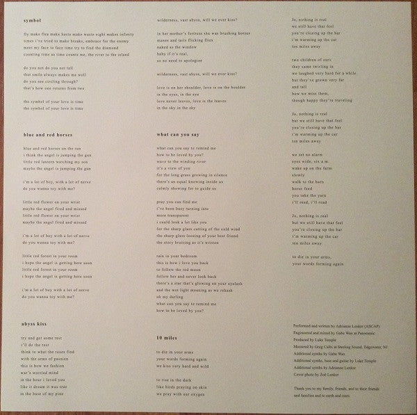 Tracklist: A1. Terminal Paradise, A2. From, A3. Womb, A4. Out Of Your Mind, A5. Cradle, B1. Symbol, B2. Blue And Red Horses, B3. Abyss Kiss, B4. What Can You Say, B5. 10 Miles