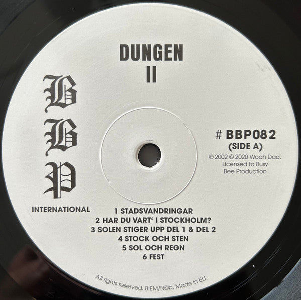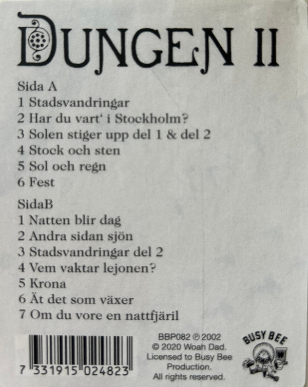 Tracklist: A1. Stadsvandringar, A2. Har Du Vart' I Stockholm?, A3. Solen Stiger Upp Del 1 & Del 2, A4. Stock Och Sten, A5. Sol Och Regn, A6. Fest, B1. Natten Blir Dag, B2. Andra Sidan Sjön, B3. Stadsvandringar Del 2, B4. Vem Vaktar Lejonen?, B5. Krona, B6. Ät Det Som Växer, B7. Om Du Vore En Nattfjäril