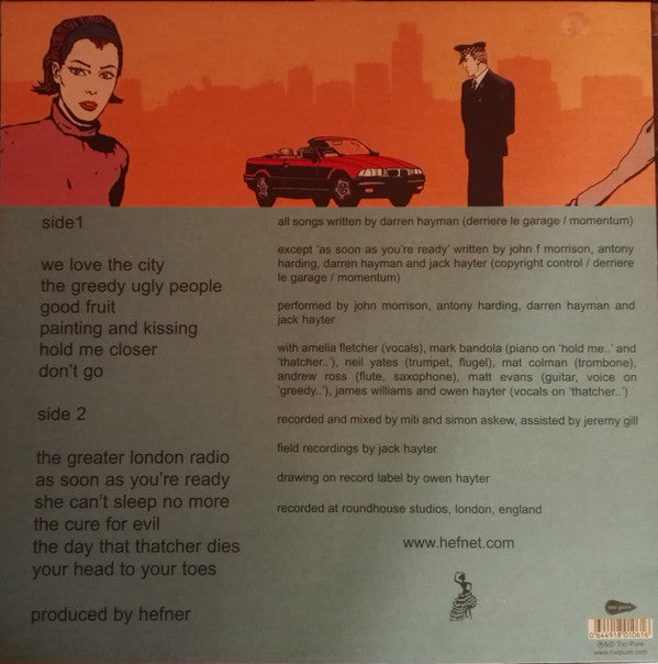 Tracklist: A1. We Love The City, A2. The Greedy Ugly People, A3. Good Fruit, A4. Painting And Kissing, A5. Hold Me Closer, A6. Don't Go, B1. The Greater London Radio, B2. As Soon As You're Ready, B3. She Can't Sleep No More, B4. The Cure For Evil, B5. The Day That Thatcher Dies, B6. Your Head To Your Toes