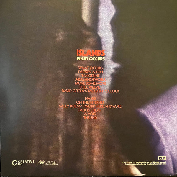 Tracklist: A1. What Occurs, A2. Drown A Fish, A3. Tangerine, A4. Arachnophobia, A5. Move Some More, A6. Boll Weevil, A7. David Geffen's Jackson Pollock, B1. Hang, B2. On The Internet, B3. Sally Doesn't Work Here Anymore, B4. Talk Is Cheap, B5. A Void, B6. The End