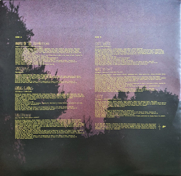 Tracklist: A1. Highest In The Room (Remix), A2. Jackboys, A3. Gang Gang, A4. Had Enough, B1. Out West, B2. What To Do?, B3. Gatti