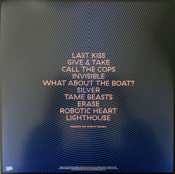 Tracklist: A1. Last Kiss, A2. Give & Take, A3. Call The Cops, A4. Invisible, A5. What About The Boat?, B1. Silver, B2. Tame Beasts, B3. Erase, B4. Robotic Heart, B5. Lighthouse