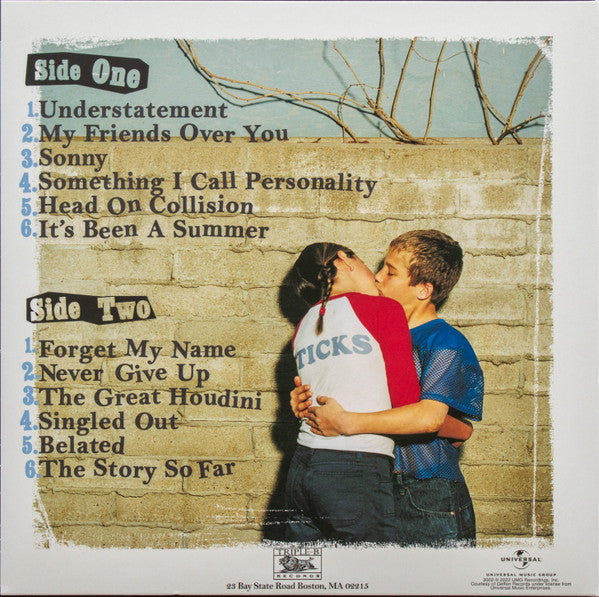 Tracklist: A1. Understatement, A2. My Friends Over You, A3. Sonny, A4. Something I Call Personality, A5. Head On Collision, A6. It's Been A Summer, B1. Forget My Name, B2. Never Give Up, B3. The Great Houdini, B4. Singled Out, B5. Belated, B6. The Story So Far