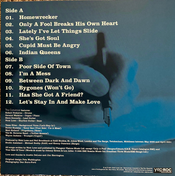 Tracklist: A1. Homewrecker, A2. Only A Fool Breaks His Own Heart, A3. Lately I've Let Things Slide, A4. She's Got Soul, A5. Cupid Must Be Angry, A6. Indian Queens, B7. Poor Side Of Town, B8. I'm A Mess, B9. Between Dark And Dawn, B10. Bygones (Won't Go), B11. Has She Got A Friend?, B12. Let's Stay In And Make Love, C1. There Will Never Be Any Peace (Until God Is Seated at the Conference Table), D1. Different Kind Of Blue, D2. Mama Said