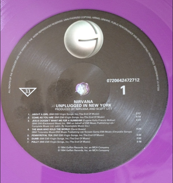 Tracklist: A1. About A Girl, A2. Come As You Are, A3. Jesus Doesn't Want Me For A Sunbeam, A4. The Man Who Sold The World, A5. Pennyroyal Tea, A6. Dumb, A7. Polly, B1. On A Plain, B2. Something In The Way, B3. Plateau, B4. Oh Me, B5. Lake Of Fire, B6. All Apologies, B7. Where Did You Sleep Last Night