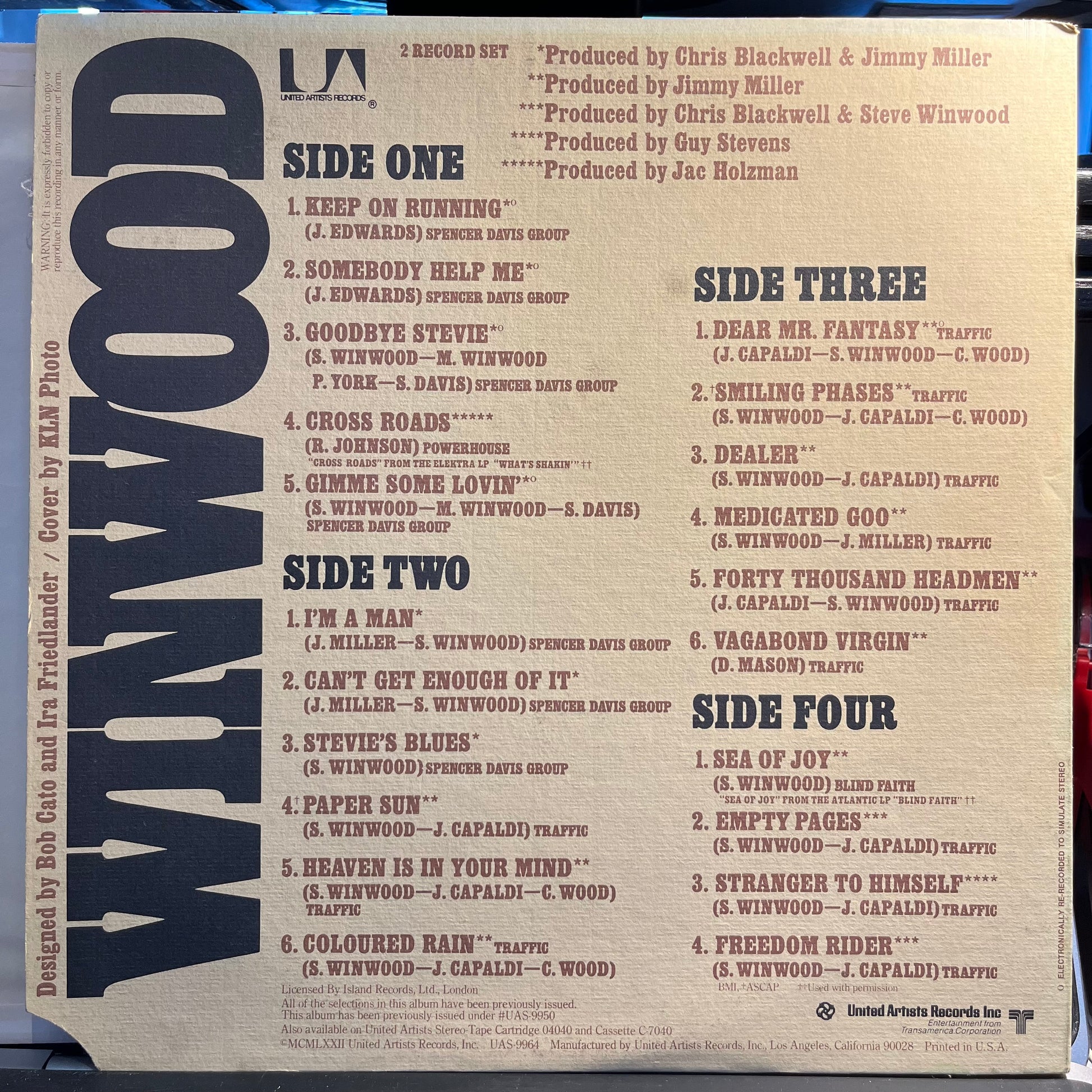 Tracklist: A1. Keep On Running, A2. Somebody Help Me, A3. Goodbye Stevie, A4. Cross Roads, A5. Gimme Some Lovin', B1. I'm A Man, B2. Can't Get Enough Of It, B3. Stevie's Blues, B4. Paper Sun, B5. Heaven Is In Your Mind, B6. Coloured Rain, C1. Dear Mr. Fantasy, C2. Smiling Phases, C3. Dealer, C4. Medicated Goo, C5. Forty Thousand Headmen, C6. Vagabond Virgin, D1. Sea Of Joy, D2. Empty Pages, D3. Stranger To Himself, D4. Freedom Rider
