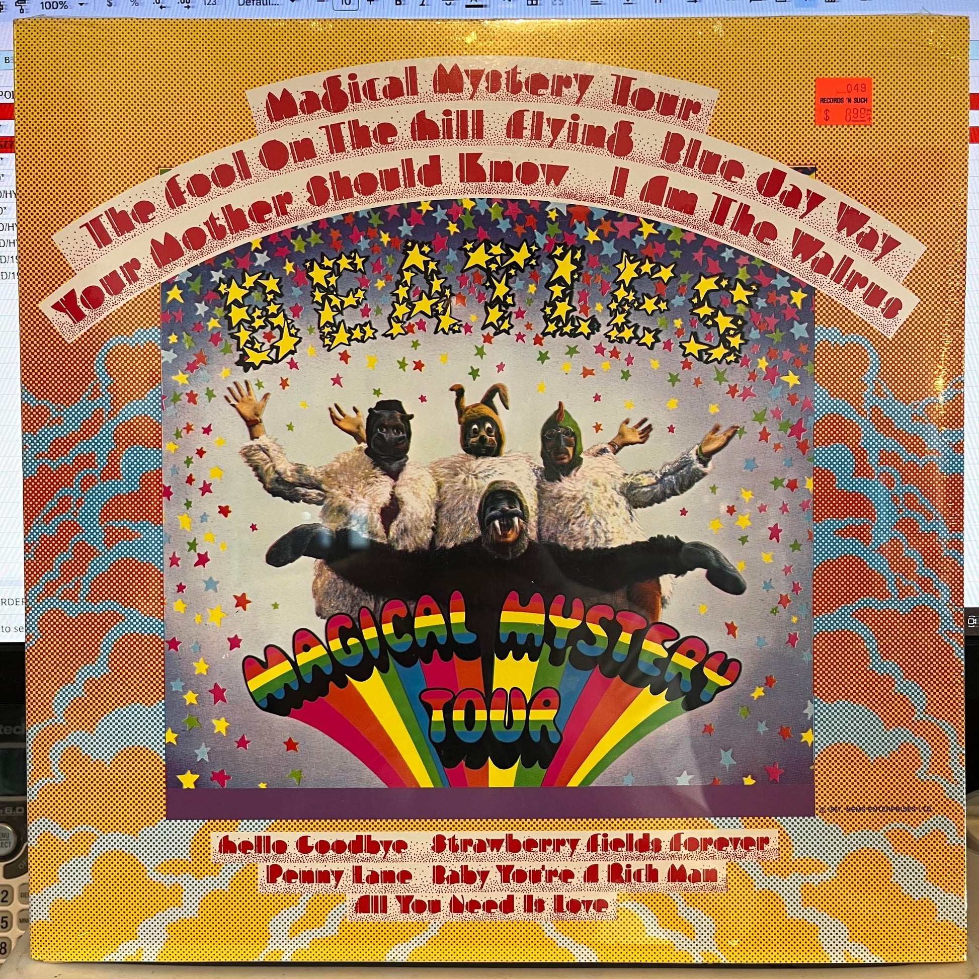 Tracklist: A1. Magical Mystery Tour, A2. The Fool On The Hill, A3. Flying, A4. Blue Jay Way, A5. Your Mother Should Know, A6. I Am The Walrus, B1. Hello Goodbye, B2. Strawberry Fields Forever, B3. Penny Lane, B4. Baby You're A Rich Man, B5. All You Need Is Love