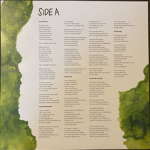 Tracklist: A1. Great No One, A2. Future Me Hates Me, A3. Uptown Girl, A4. You Wouldn't Like Me, A5. Not Running, B1. Little Death, B2. Happy Unhappy, B3. River Run: Lvl 1, B4. Whatever, B5. Less Than Thou
