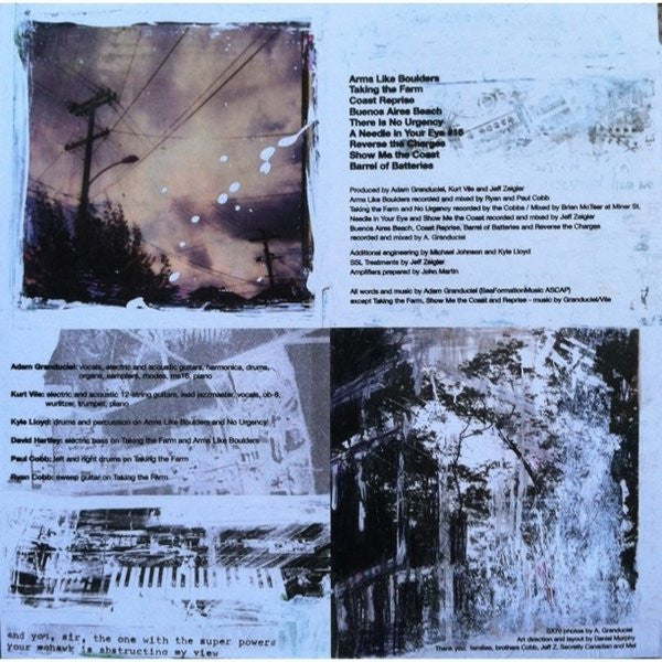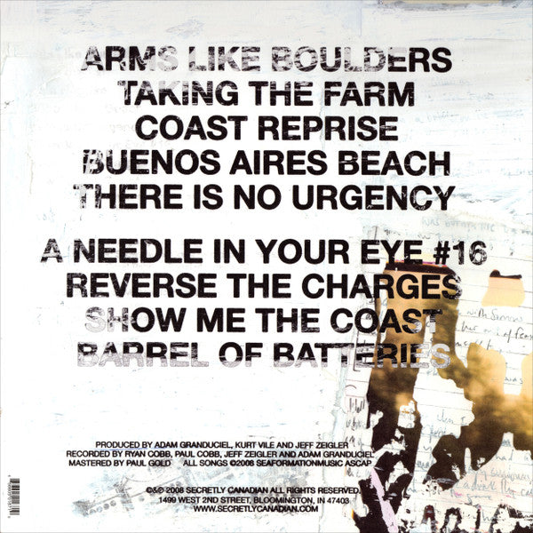 Tracklist: A1. Arms Like Boulders, A2. Taking The Farm, A3. Coast Reprise, A4. Buenos Aires Beach, A5. There Is No Urgency, B1. A Needle In Your Eye #16, B2. Reverse The Charges, B3. Show Me The Coast, B4. Barrel Of Batteries
