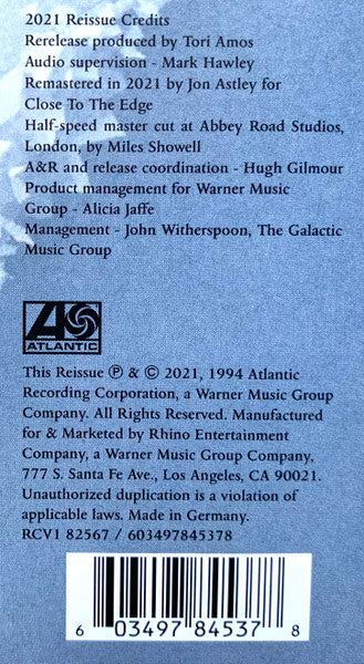 Tracklist: A1. Pretty Good Year, A2. God, A3. Bells For Her, B1. Past The Mission, B2. Baker Baker, B3. The Wrong Band, B4. The Waitress, C1. Cornflake Girl, C2. Icicle, C3. Cloud On My Tongue, D1. Space Dog, D2. Yes, Anastasia