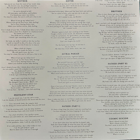Tracklist: A1. Turpentine , A2. Mother, A3. Pestilent Star, A4. Sister, A5. Astral Pariah, B1. Father (Part I), B2. Brother , B3. Father (Part II), B4. Cosmic Suicide