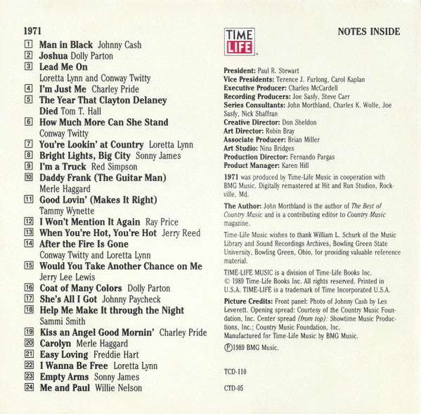 Tracklist: 1. Man In Black, 2. Joshua, 3. Lead Me On, 4. I'm Just Me, 5. The Year That Clayton Delaney Died, 6. How Much More Can She Stand, 7. You're Lookin' At Country, 8. Bright Lights, Big City, 9. I'm A Truck, 10. Daddy Frank (The Guitar Man), 11. Good Lovin' (Makes It Right), 12. I Won't Mention It Again, 13. When You're Hot, You're Hot, 14. After The Fire Is Gone, 15. Would You Take Another Chance On Me, 16. Coat Of Many Colors, 17. She's All I Got, 18. Help Me Make It Through The Night, 19. Kiss An Angel Good Mornin', 20. Carolyn, 21. Easy Loving, 22. I Wanna Be Free, 23. Empty Arms, 24. Me And Paul