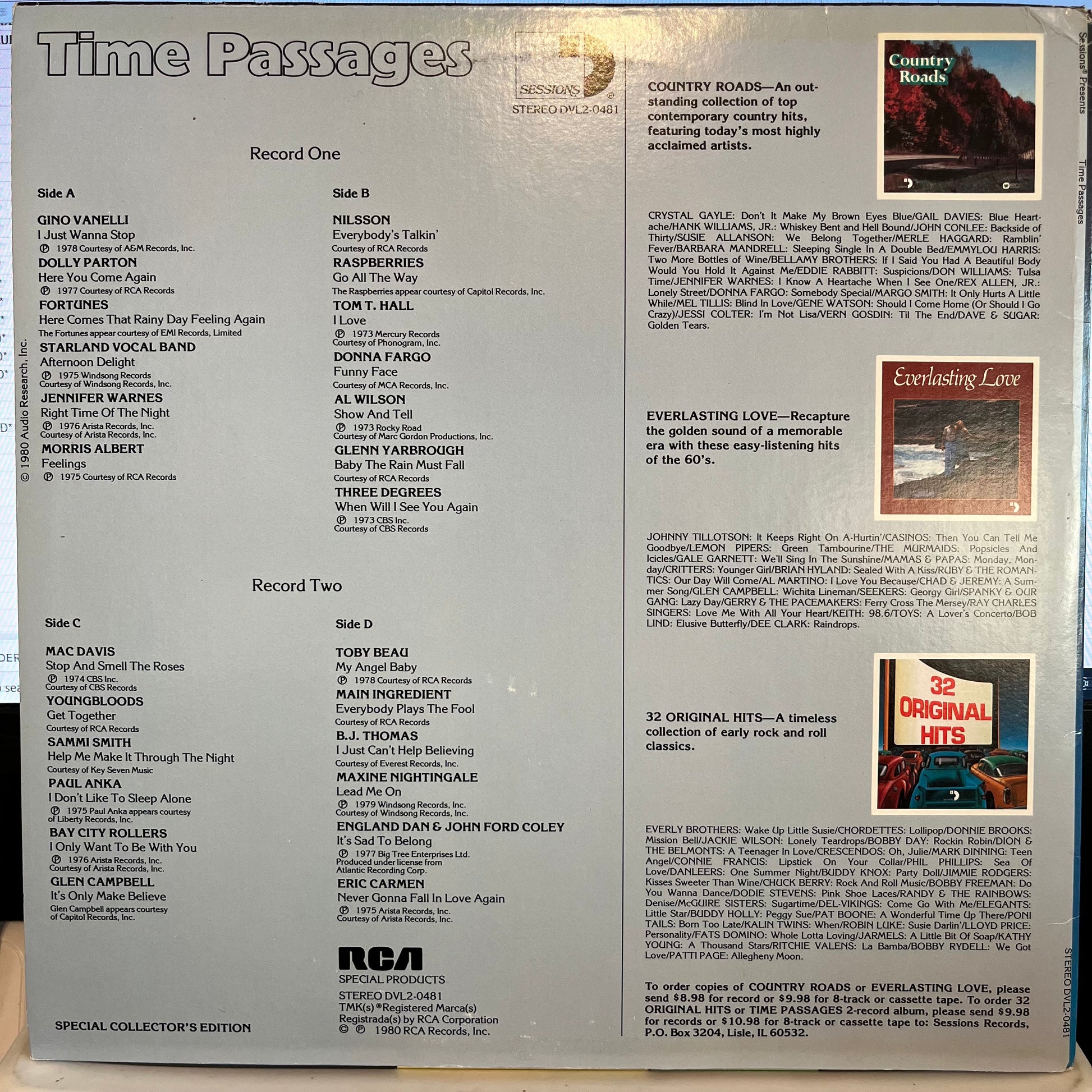 Tracklist: A1. I Just Wanna Stop, A2. Here You Come Again, A3. Here Comes That Rainy Day Feeling Again, A4. Afternoon Delight, A5. Right Time Of The Night, A6. Feelings, B1. Everybody's Talkin', B2. Go All The Way, B3. I Love, B4. Funny Face, B5. Show And Tell, B6. Baby The Rain Must Fall, B7. When Will I See You Again, C1. Stop And Smell The Roses, C2. Get Together, C3. Help Me Make It Through The Night, C4. I Don't Like To Sleep Alone, C5. I Only Want To Be With You, C6. It's Only Make Believe, D1. My Angel Baby, D2. Everybody Plays The Fool, D3. I Just Can't Help Believing, D4. Lead Me On, D5. It's Sad To Belong, D6. Never Gonna Fall In Love Again