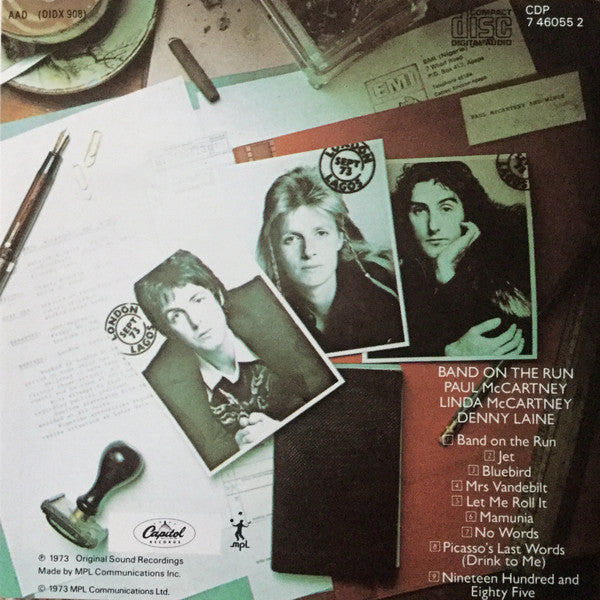 Tracklist: 1. Band On The Run, 2. Jet, 3. Bluebird, 4. Mrs Vandebilt, 5. Let Me Roll It, 6. Mamunia, 7. No Words, 8. Picasso's Last Words (Drink To Me), 9. Nineteen Hundred And Eighty Five